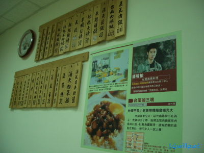 お店のイチオシは「五花肉飯」のようです。頼んだのに、写してないの・・・バカン。「五花肉飯」の写真はここで見てください~。他にはサバヒなどもメニューにあり、台南風の小吃がいろいろありました。ウィルが推薦したことを差し引いても魅力的な品揃えだと思います。