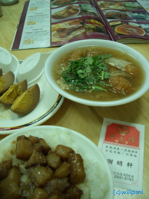 以前7月の渡台時に台北ウォーカーを買ったのですが、その中にウィルが推薦するおいしいお店が2軒載ってたのです。その時は「へー」程度で読み流してたのですが、今回、ぶらぶら歩いていたらそのお店を発見。