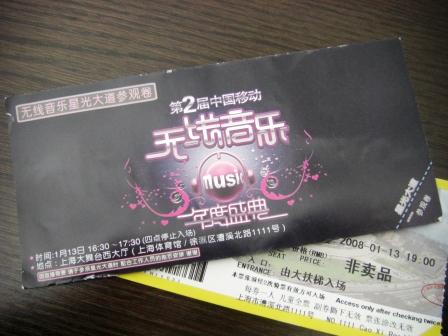 1月13日(日)上海大舞台で行われた「第二屆中国移動無線音樂年度盛典」を観覧しました。